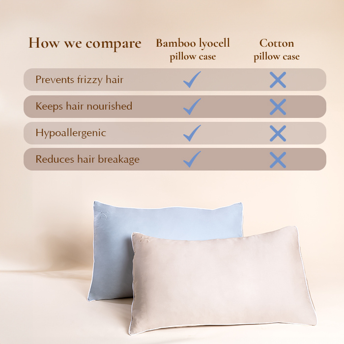 Our Bamboo Lyocell Pillowcase is crafted from smooth, eco-friendly bamboo fibers that reduce friction on hair and skin, helping to prevent frizz, tangles, and dryness overnight. Unlike cotton, it retains moisture and supports hair health.